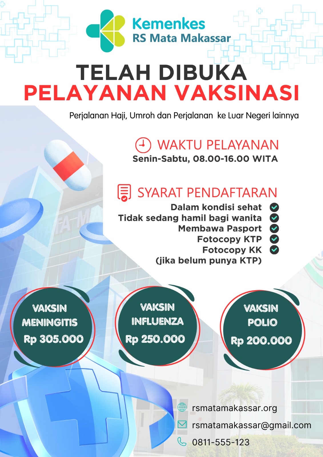 RS Mata Makassar berkomitmen untuk terus menghadirkan layanan kesehatan yang bermutu, aman, dan berorientasi pada kepuasan pasien. Melalui layanan vaksinasi ini, diharapkan masyarakat semakin sadar akan pentingnya pencegahan penyakit melalui imunisasi yang tepat dan terpercaya.